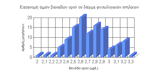 το εύρος κατανομής του βαναδίου ορού σε Ελληνικό πληθυσμό φυσιολογικών ενηλίκων