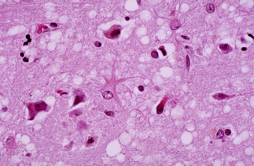 σπογγώδους εγκεφαλοπάθειας του ανθρώπου και έχει περιγραφεί πως προσβάλλει