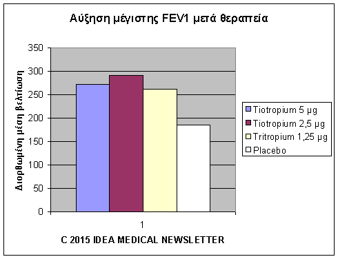 μg, 1,25 μg και placebo Respimat® αντίστοιχα. Μετά θεραπεία 12 εβδομάδων ο έλεγχος της